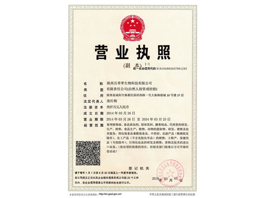 陜西百草萃生物科技有限公司,位于陜西省咸陽市秦都區(qū)濱河西路1號大秦御港城,公司成立于1996年,主要從事天然植物種植、研發(fā)、生產(chǎn)、加工、銷售為一體的高科技企業(yè)。主營醫(yī)藥原料、保健品原料、化妝品原料,精細化工原料。公司致力于人類健康保護事業(yè)“ 以科技為動力,以質(zhì)量求生存” 的本質(zhì),依托陜西高新科技技術(shù)人才和科研優(yōu)勢,已形成多學科、全方位、高層次的技術(shù)管理精英團隊。充分利用秦巴山區(qū)的天然藥物資源,歷經(jīng)多年發(fā)展為打造百草萃生物品牌奠定了基礎(chǔ)。